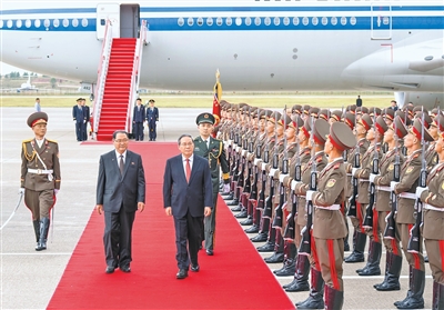 當地時間10月9日中午,李強乘包機抵達平壤順安國際機場。朝鮮勞動黨中央政治局常委、內閣總理樸泰成率黨和政府高級官員到機場迎接,并為李強舉行歡迎儀式。李強在樸泰成陪同下檢閱了儀仗隊。中國駐朝鮮大使王亞軍也到機場迎接。