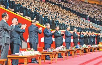 當地時間10月9日和10日晚,朝鮮勞動黨建黨80周年慶?;顒釉谄饺琅e行。中共中央政治局常委、國務院總理李強出席慶祝大會,并觀看大型團體操、文藝表演和閱兵式等。這是10月9日晚,李強出席慶祝大會,并觀看大型團體操、文藝表演。 |
